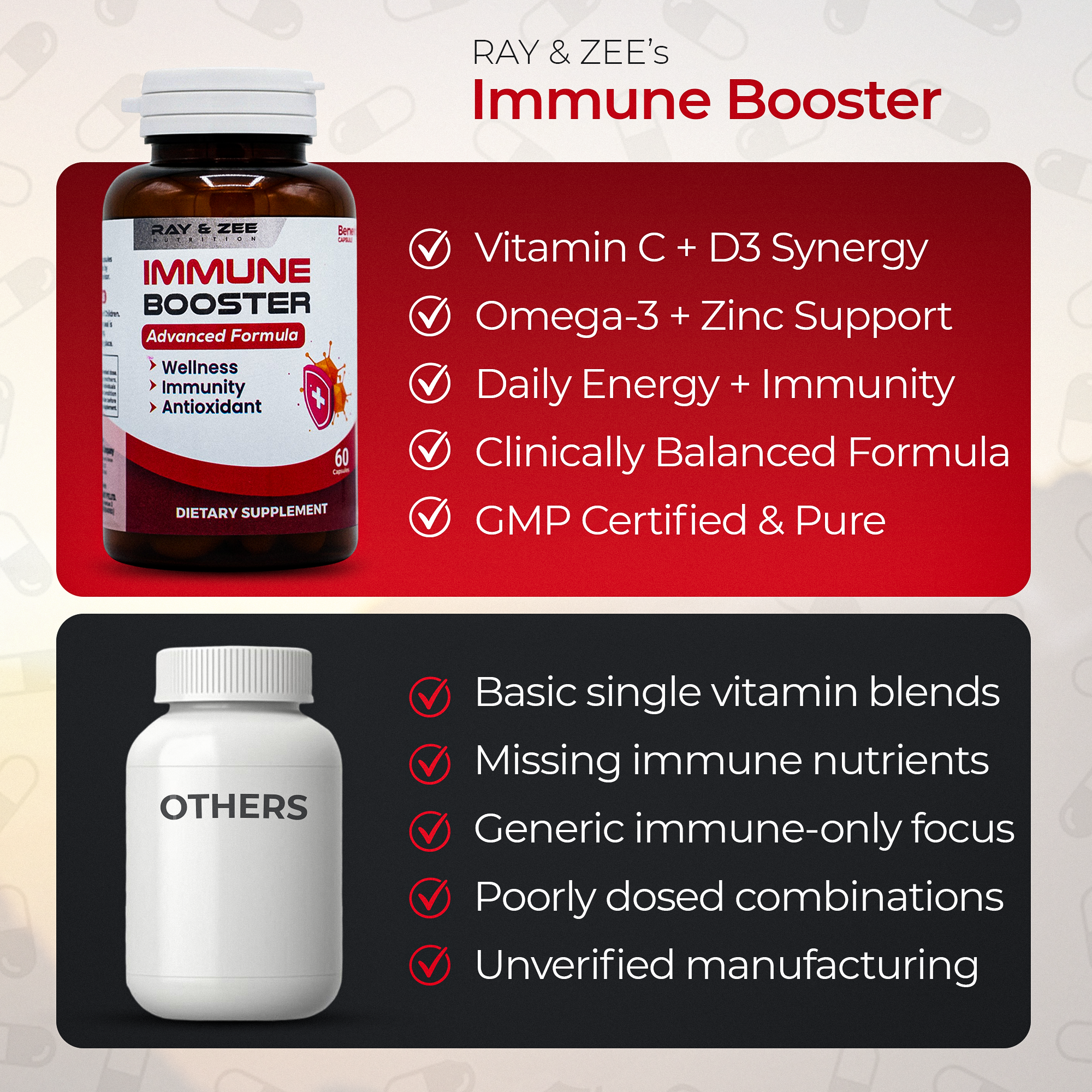 RAYNZEE’s Immune Booster is a powerful blend of essential vitamins, minerals, and nutrients designed to fortify your immune system and support overall wellness. Enriched with Omega-3 and key vitamins including A, C, D3, and E, this formula helps strengthen your body’s natural defenses against daily stressors and environmental threats. B-complex vitamins like B6, B12, niacin, and folic acid work together to support energy production and promote healthy cellular function. With added Zinc Gluconate and Sodium Chloride, it enhances immune response, supports hydration, and helps maintain electrolyte balance.